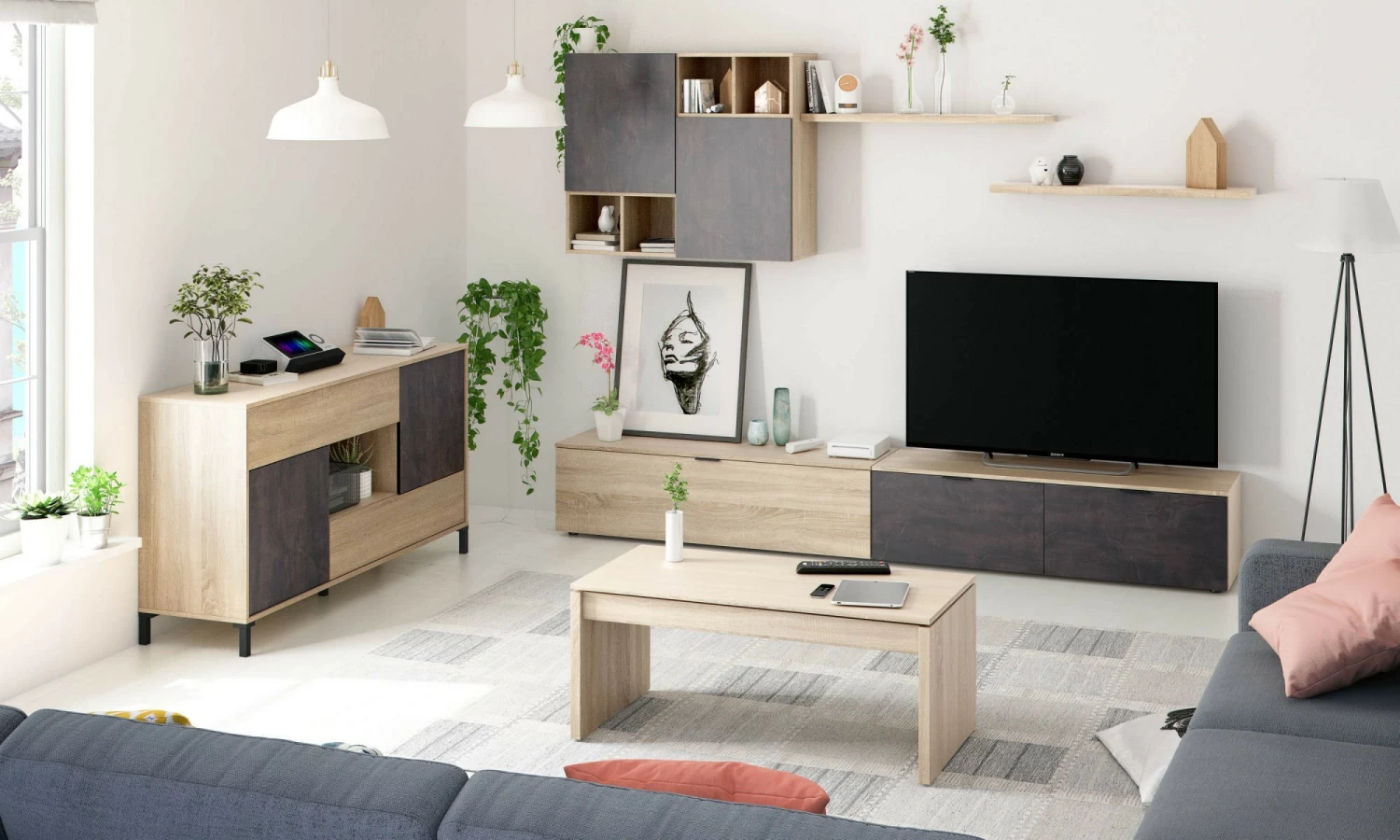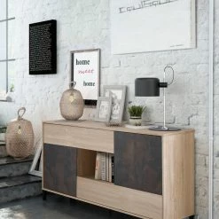 Ebuy24 Canasta Sideboard – Canasta Sideboard 2 Türen, 3 Schubladen und 2 Ablagen, Eiche Dekor.