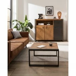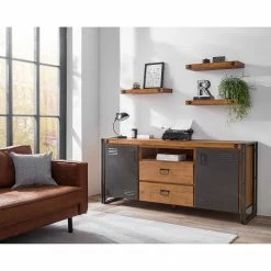 Ars Natura Sideboard Roody – Inkl. Beleuchtung – Akazie massiv / Metall – Akazie / Schwarz