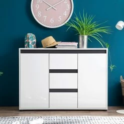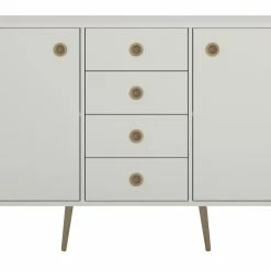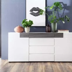 Ebuy24 Tomar Sideboard – Tomar Sideboard 2 Türen und 4 Schubladen, weiss, weiss hochglanz.