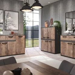 Ebuy24 Tokyo Sideboard 3 – Eiche Schwarzbraun Dekor – Kastanienbraun – 45 x 155 cm – Glas