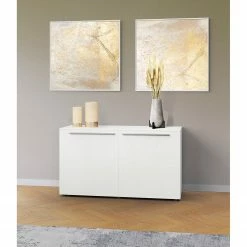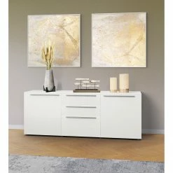 GWINNER Sideboard Bellano IV – Echtholzfurnier – Matt Weiß / Balkeneiche – Ohne Beleuchtung