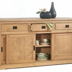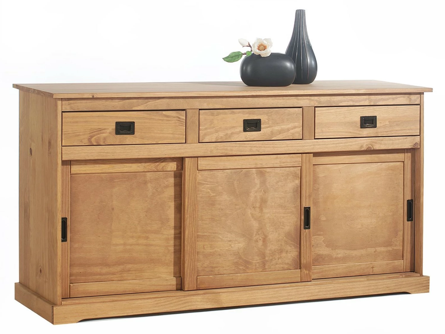ist ein wahres Stauraumwunder. Jede Menge Platz für Geschirr, Tischdecken und Dekomaterialien verbirgt sich hinter den 3 Schiebetüren und 3 Schubladen. Dank dem durchgehenden Einlegeboden können hier problemlos auch grössere Dinge wie Töpfe, Pfannen oder Kerzenständer verstaut werden. Die Kommode SAVONA mit dem rustikalen Design macht sich auch prima in Ihrem Flur und bringt reichlich Mützen, Handschuhe oder Schals unter.