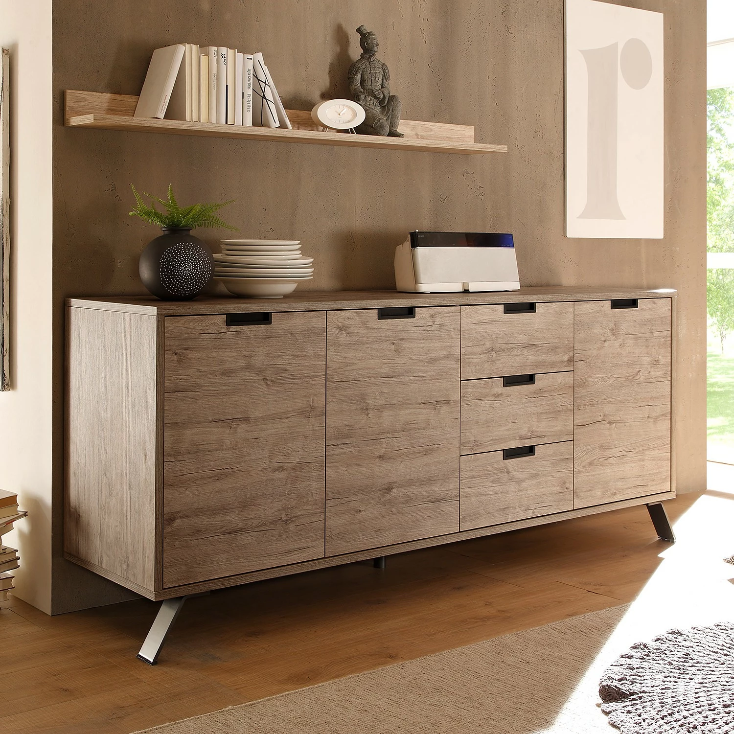 - Palma gibt es wahlweise in Eiche Dekor und in Nussbaum Dekor, so kann genau das passende Sideboard für jeden Wohnbereich gewählt werden.