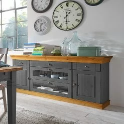- Front & Korpus: Massivholz Kiefer, lackiert