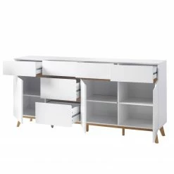 - Front & Korpus: MDF (Mitteldichte Holzfaserplatte), lackiert