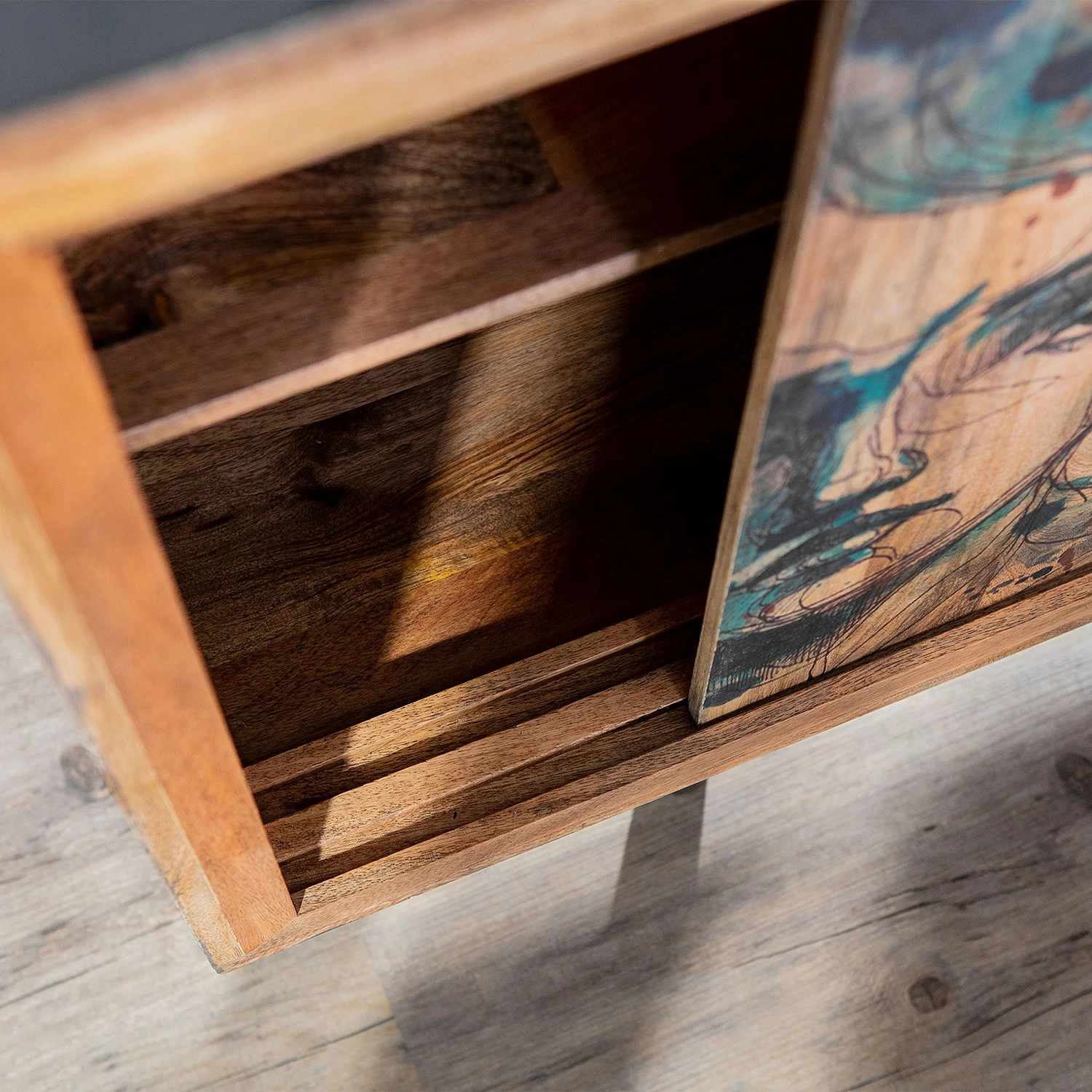 - Korpus & Füße: Massivholz Mango, gebeizt & lackiert