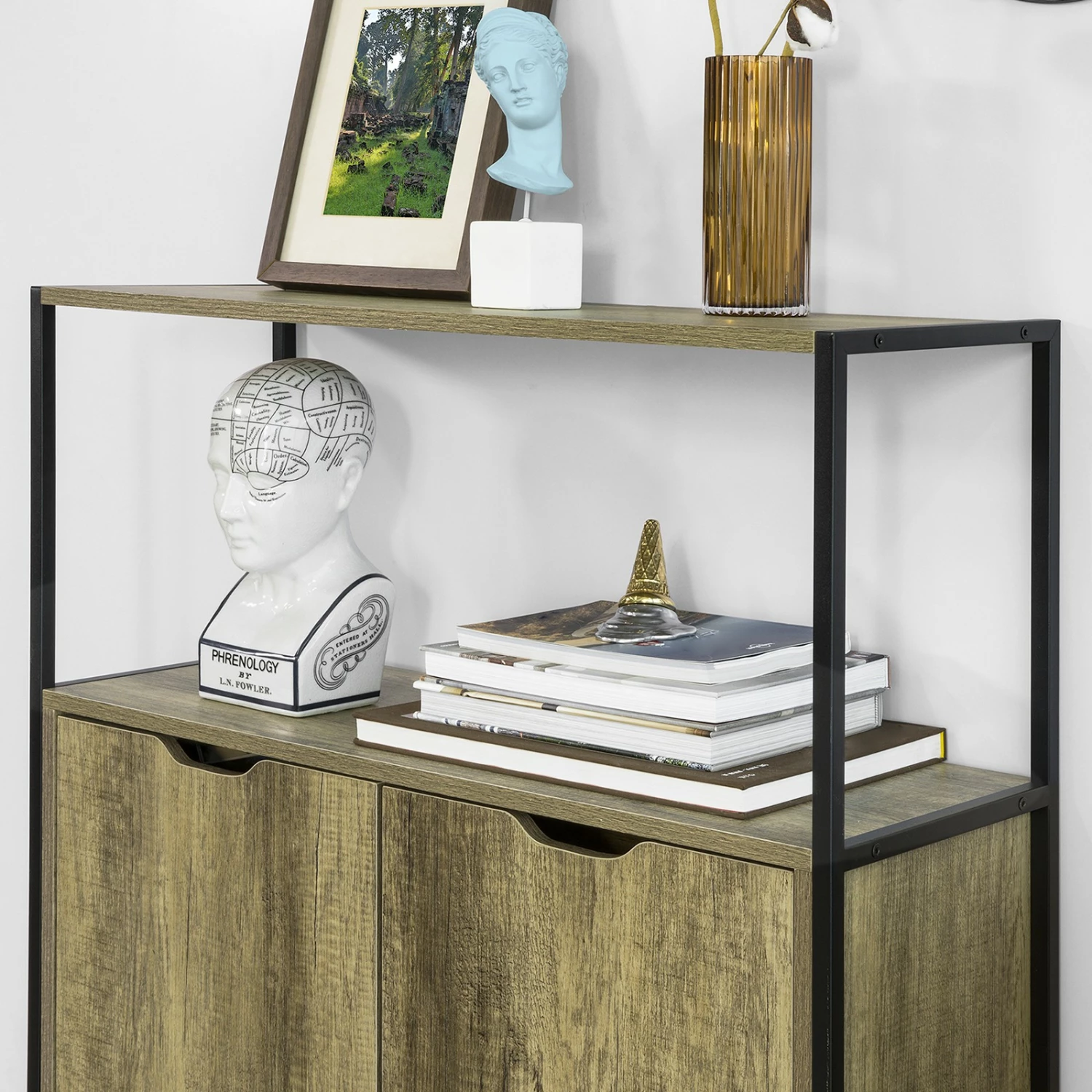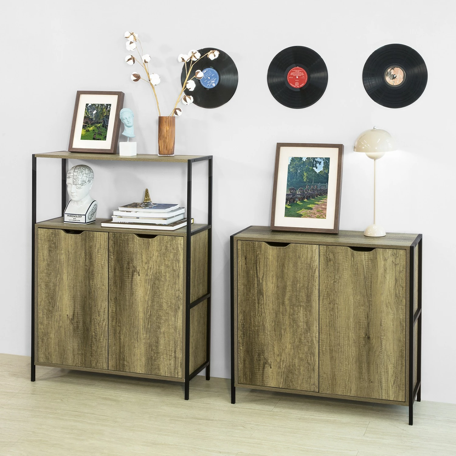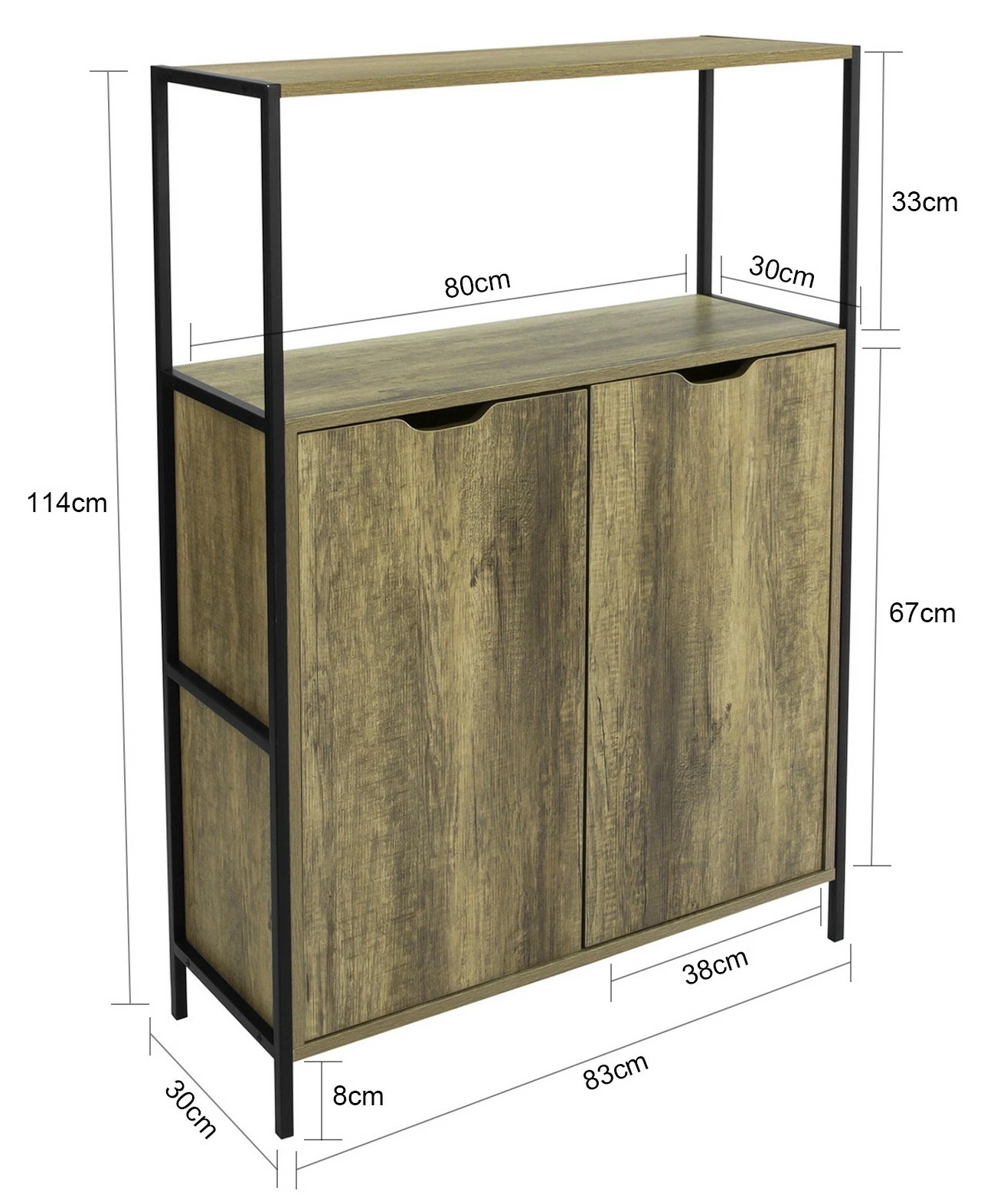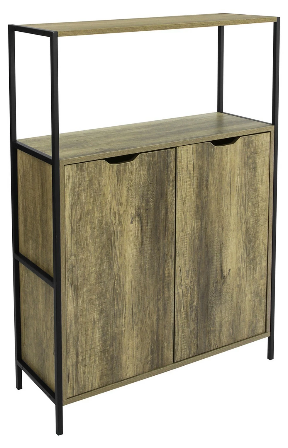 Mit Vintage-Holzoptik und industriellem schwarzen Metall-Design zeigt dieses Sideboard den Charme von Retro- und Landhausstil und passt zu einer Vielzahl von Dekorationen in Ihrem Zuhause/Büro.