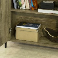 Blumenvasen oder Fotos auf die Oberfläche, oft genutzte Sachen in die offene Ablage, aber was ist mit den anderen kleinen Dingen? Verstecken Sie sie hinter den Türen auf der verstellbaren Regalebene – Ordentlich und staubgeschützt!