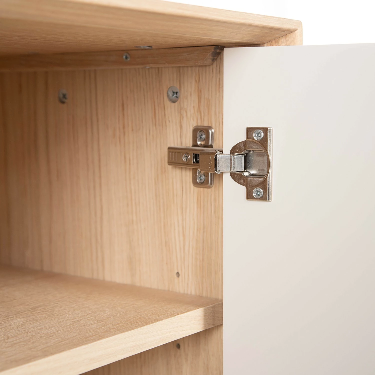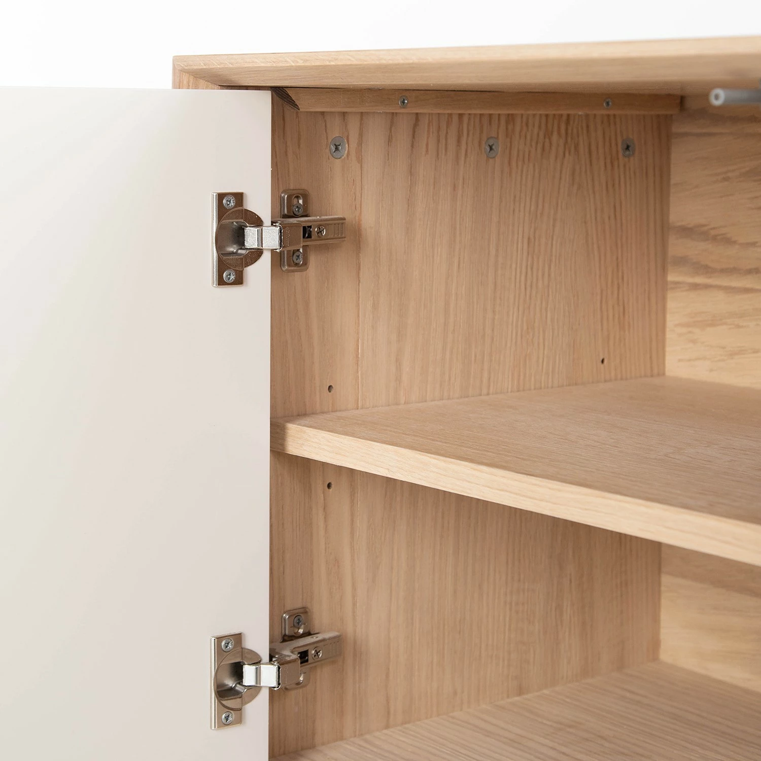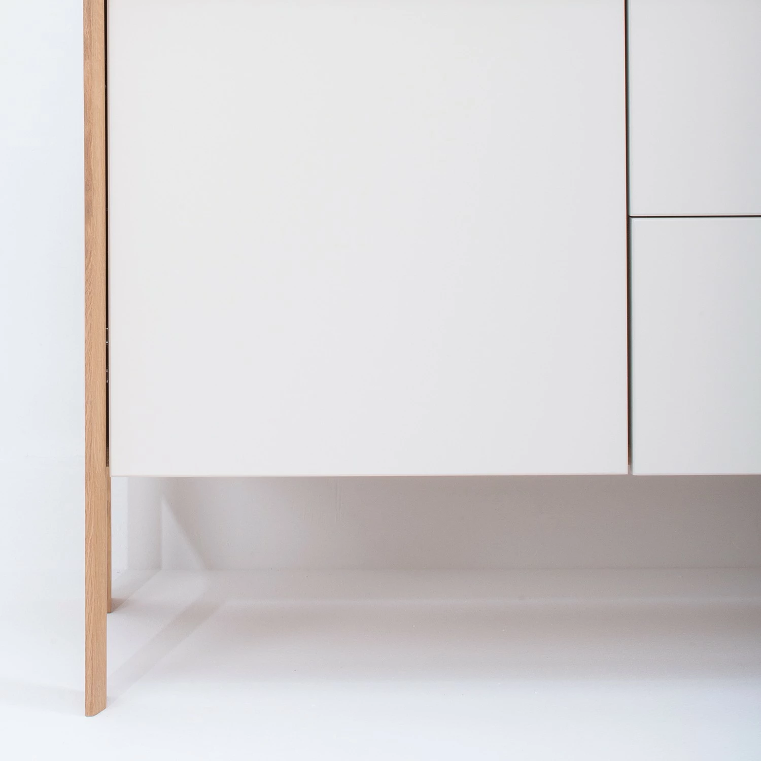 - Korpus: MDF (Mitteldichte Holzfaserplatte), furniert & geölt