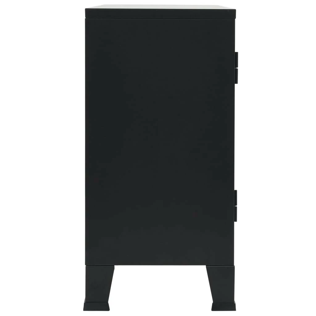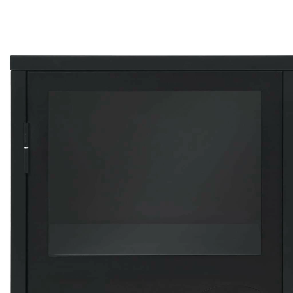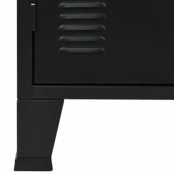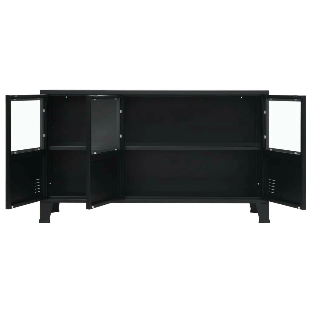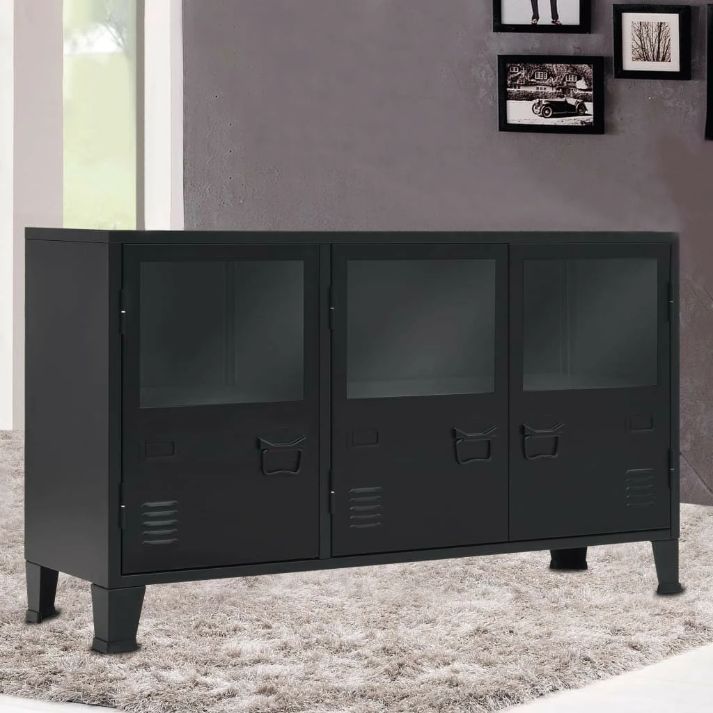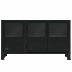 Das Sideboard verfügt über 2 innere Einlegeböden und 3 Türen mit Glasfenstern und bietet daher reichlich Platz zur ordentlichen Aufbewahrung Ihrer Kleider, Bücher und anderer Gegenstände. Jede Tür ist mit einem Namenskartenhalter und Lüftungsöffnungen ausgestattet, welchen den industriellen Look unterstreichen. Die Kommode besteht aus Blech, wodurch sie langlebig und leicht zu reinigen ist. Die flache Oberseite stellt eine praktische Oberfläche dar, auf die Sie Obstkörbe, Vasen oder einige dekorative Elemente stellen können. Die Endmontage gelingt mühelos.